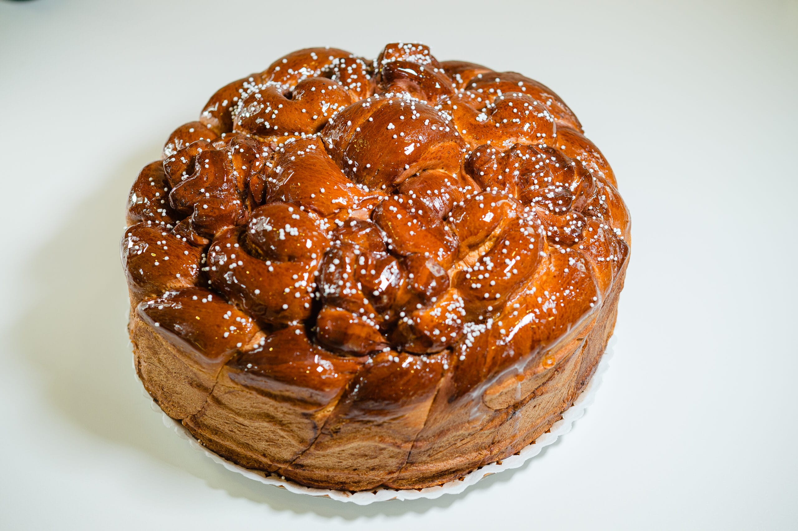Colac de casa din aluat de cozonac. În perioada postului produsul va fi din aluat de post.