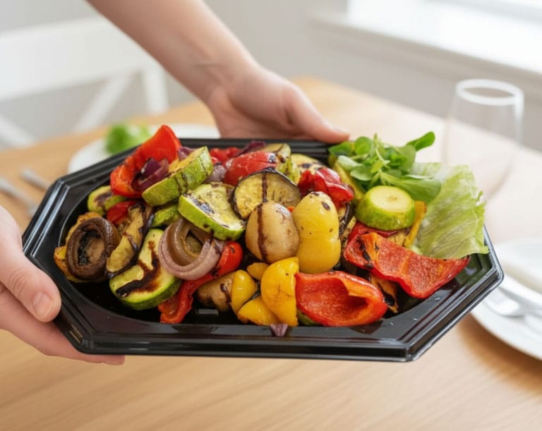 Cartofi, Ceapă, Roșie, Ciuperci champignons, Dovlecel, Vinetele, Morcov, Ulei de măsline, Sos de soial, UsturoiDeclarație nutrițională în medie per 100g