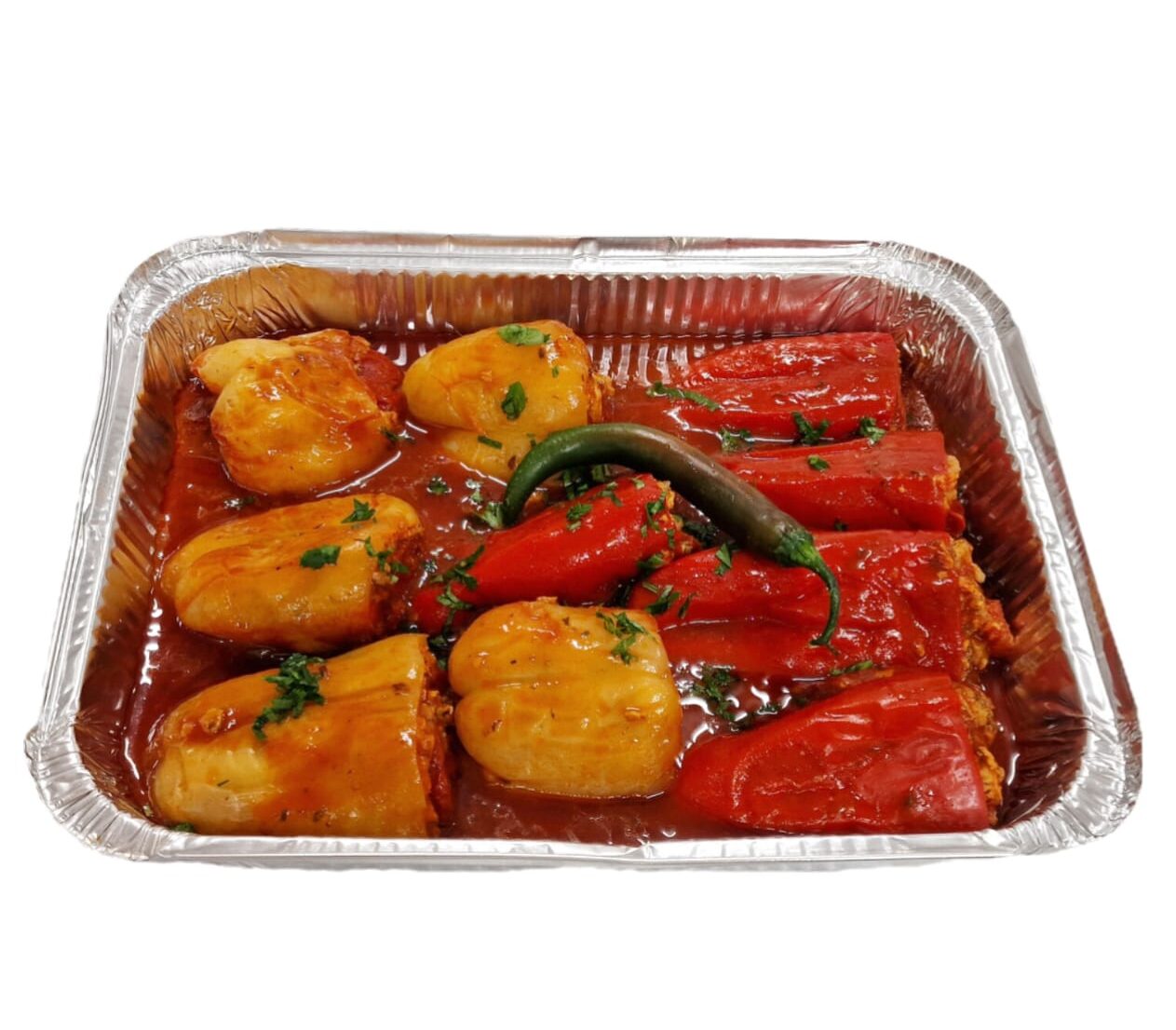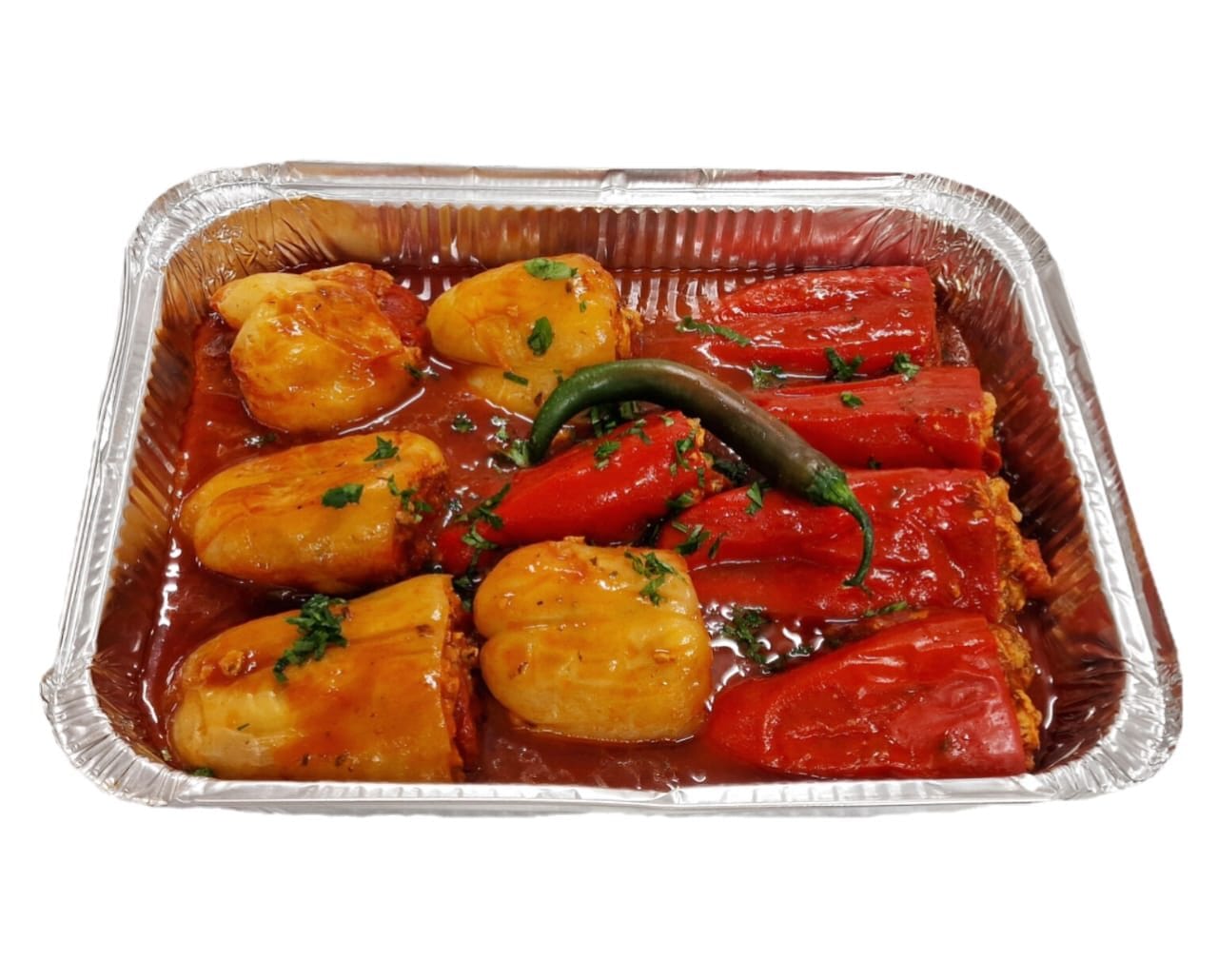 ardei, porc, vită, orez, ceapă, sos de roșii, ulei, sare condimenteDeclarație nutrițională în medie per 100g