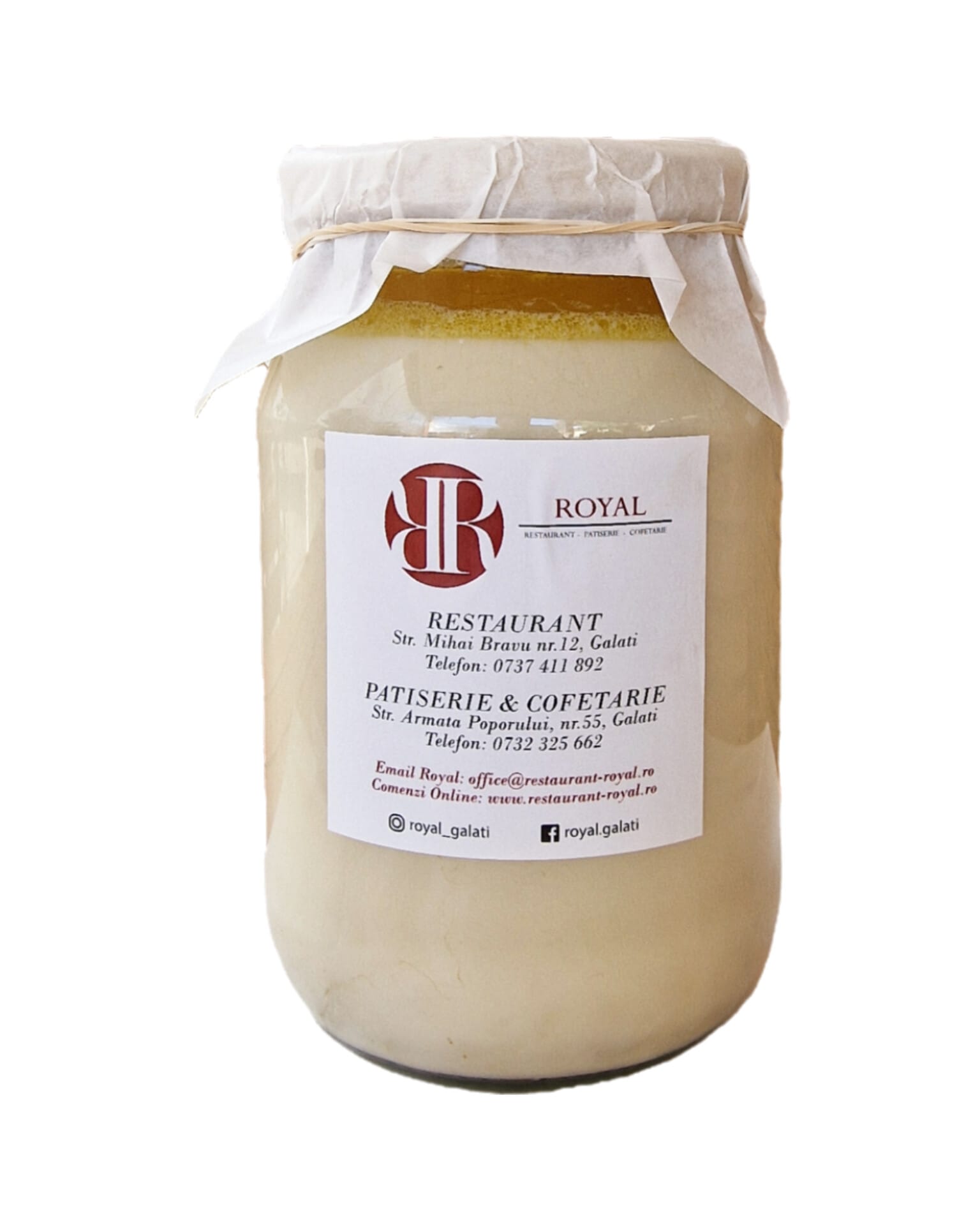 ( cantitate brută -1700 ml, 1400 g cantitate netă)burtă de vită 300g, oase de vita, smântână, gălbenuș de ou, morcov, țelină, ceapă, usturoi, oțet, sare, piper.Declarație nutrițională în medie per 100g