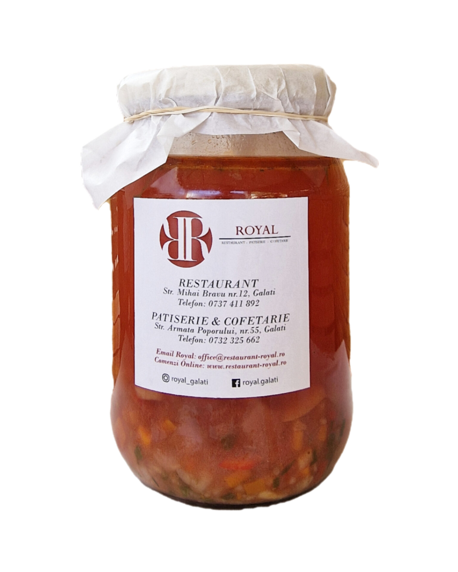 ( cantitate brută -1700 ml, 1400 g cantitate netă)morcov, țelină, păstârnac, ardei gras, cartofi, dovlecel, fasole verde, mazăre, roșii, ceapă, borș, verdeață (leuștean, pătrunjel), sare, piper.Declarație nutrițională în medie per 100g