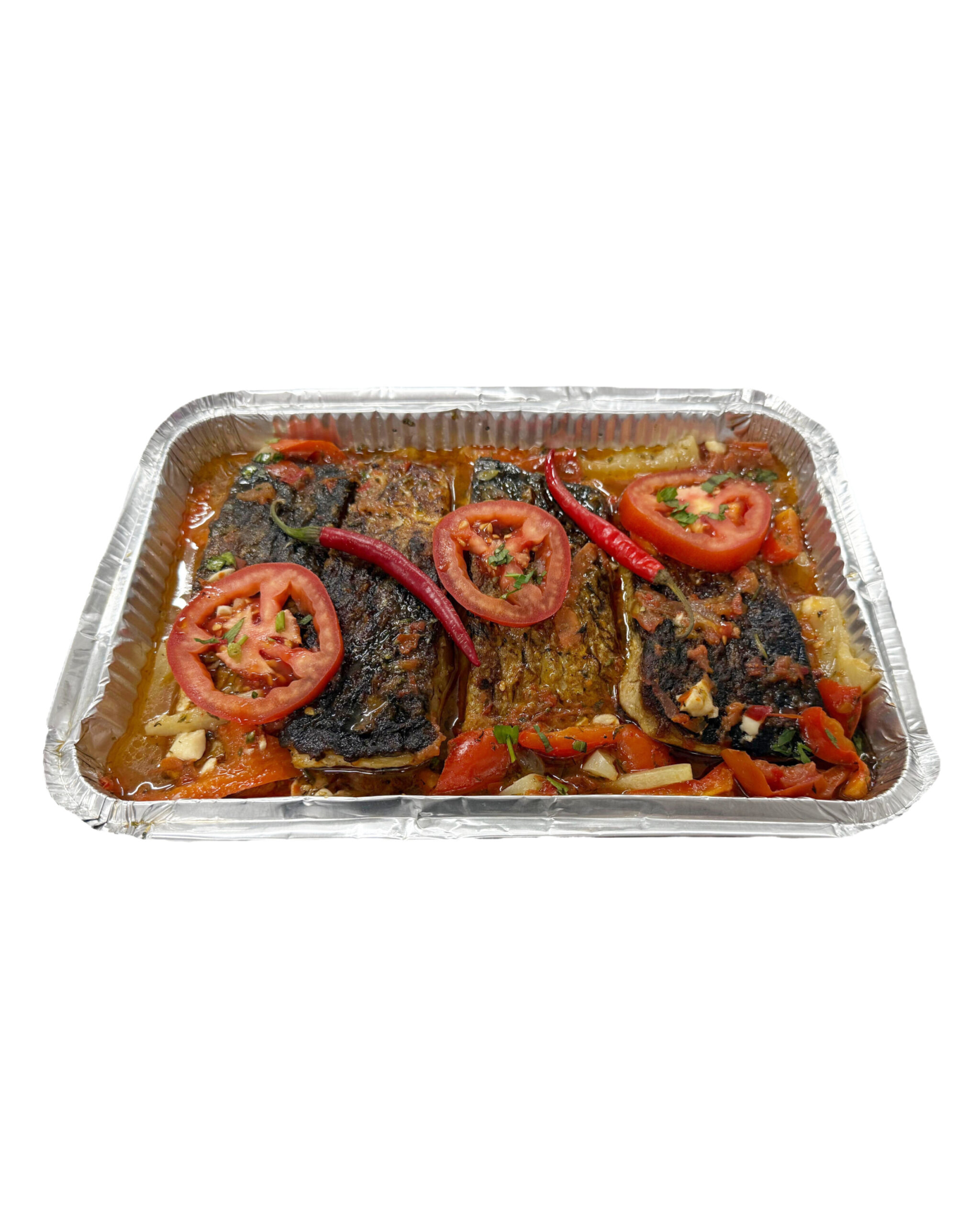crap, roșii coapte, ardei copți, usturoi, ceapă, ardei iute, sare, piper, verdeață proaspătă.Declarație nutrițională în medie per 100g