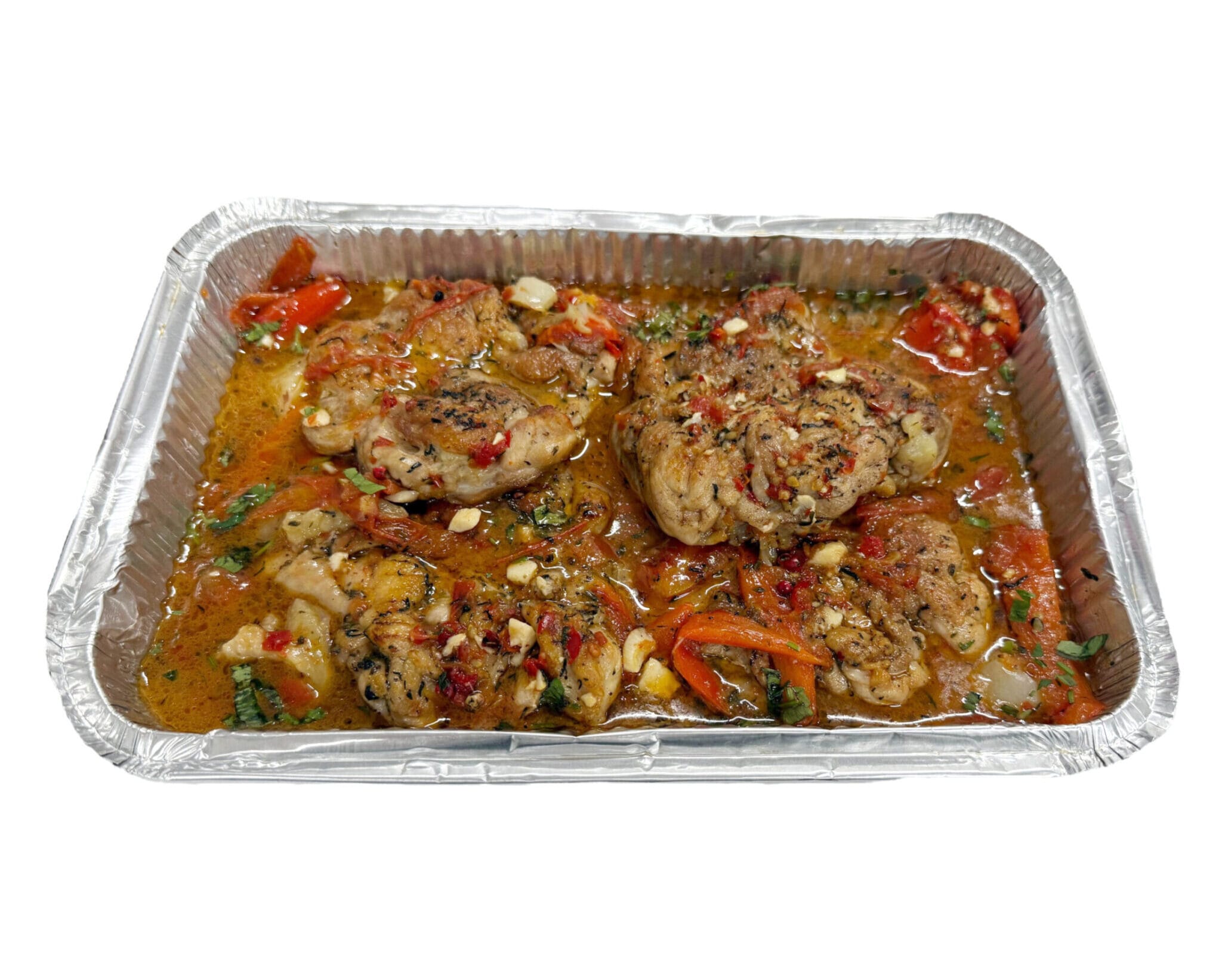 carne de pui, roșii coapte, ardei copți, usturoi, ardei iute, cimbru, verdeață, sare, piper| Valoare energetică | 165 kcal |