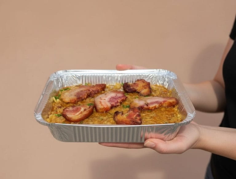 fleică de porc afumată, ciolan afumat dezosat 400g, varză albă, ceapă, morcov, ulei, pastă de roșii / bulion, condimente: sare, piper, foi de dafin, cimbruDeclarație nutrițională în medie per 100g