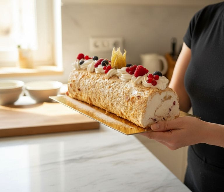 Royal SAEști în: Comandă online restaurant & cofetărie Restaurant Royal Galați Torturi Ruladă Bezea cu Migdale R25